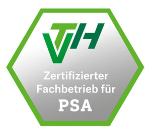 Seit Jah­ren sind wir in der Fach­grup­pe PSA des VTH Ver­ban­des mit wei­te­ren Mit­glie­dern bestrebt, den Fach­be­ra­ter PSA zu schu­len und ent­spre­chend aus­zu­bil­den. Las­sen Sie sich von einem berufs­ge­nos­sen­schaft­lich geprüf­ten Fach­mann beraten.